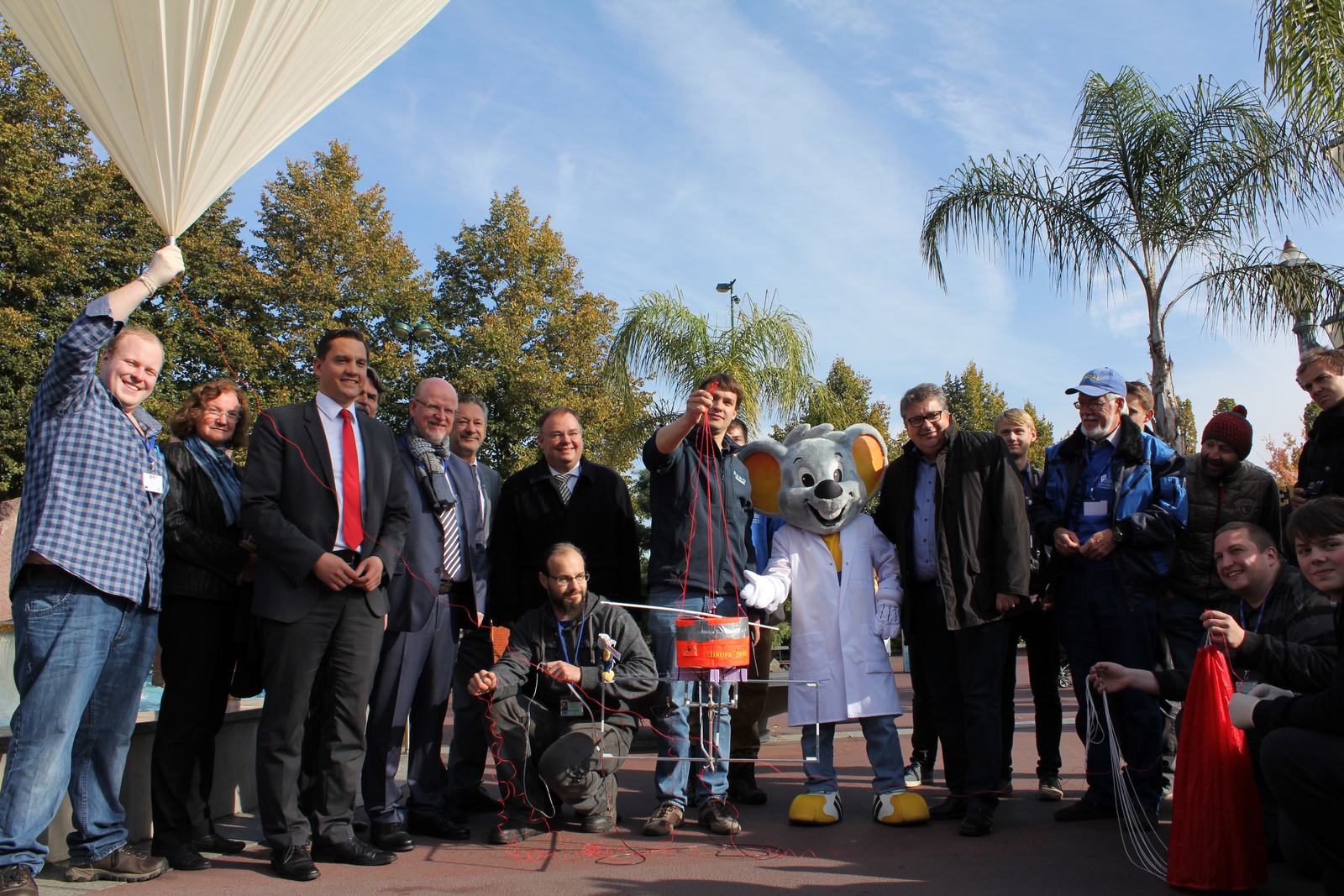 Ein Stratosphärenballon steigt vor den Augen der staunenden Gäste vor dem Europa-Park in den blauen Himmel. Auch der SPD-Bundestagsabgeordnerte Johannes Fechner hat sich am Donnerstag zum Rundgang mit Vertretern der beiden Veranstalter, Joachim Lerch als Vorsitzender des Fördervereins Science & Technologie und Michael Kreft von Byern als Beauftragter der Geschäftsführung des Europa-Parks, eingefunden. Der Stratosphärenballon überträgt vom Start bis zu einer Flughöhe von 30 Kilometern Bilder direkt auf eine Videoleinwand vor dem Confertainment Center und ist einer der vielen Attraktionen bei den „Science Days“, die noch bis Samstag, 15. Oktober, andauern und auf denen auch die Hochschule Offenburg mit einem Stand vertreten ist.