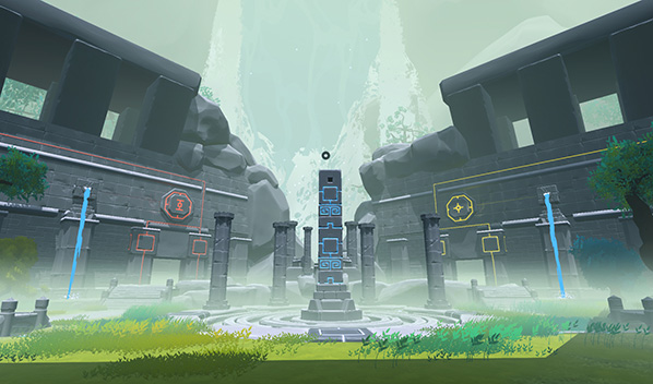 At the game's center lies an abandoned temple asking players to uncover its secrets. Throughout this journey players will encounter various mysterious devices allowing them influence over their surroundings and broaden their understanding of the game's environment. Interacting with these devices will task players with solving various puzzles that will challenge them to create an understanding of their functional nature and narrative purpose. Knowledge that will be required to uncover the temple's mysteries.