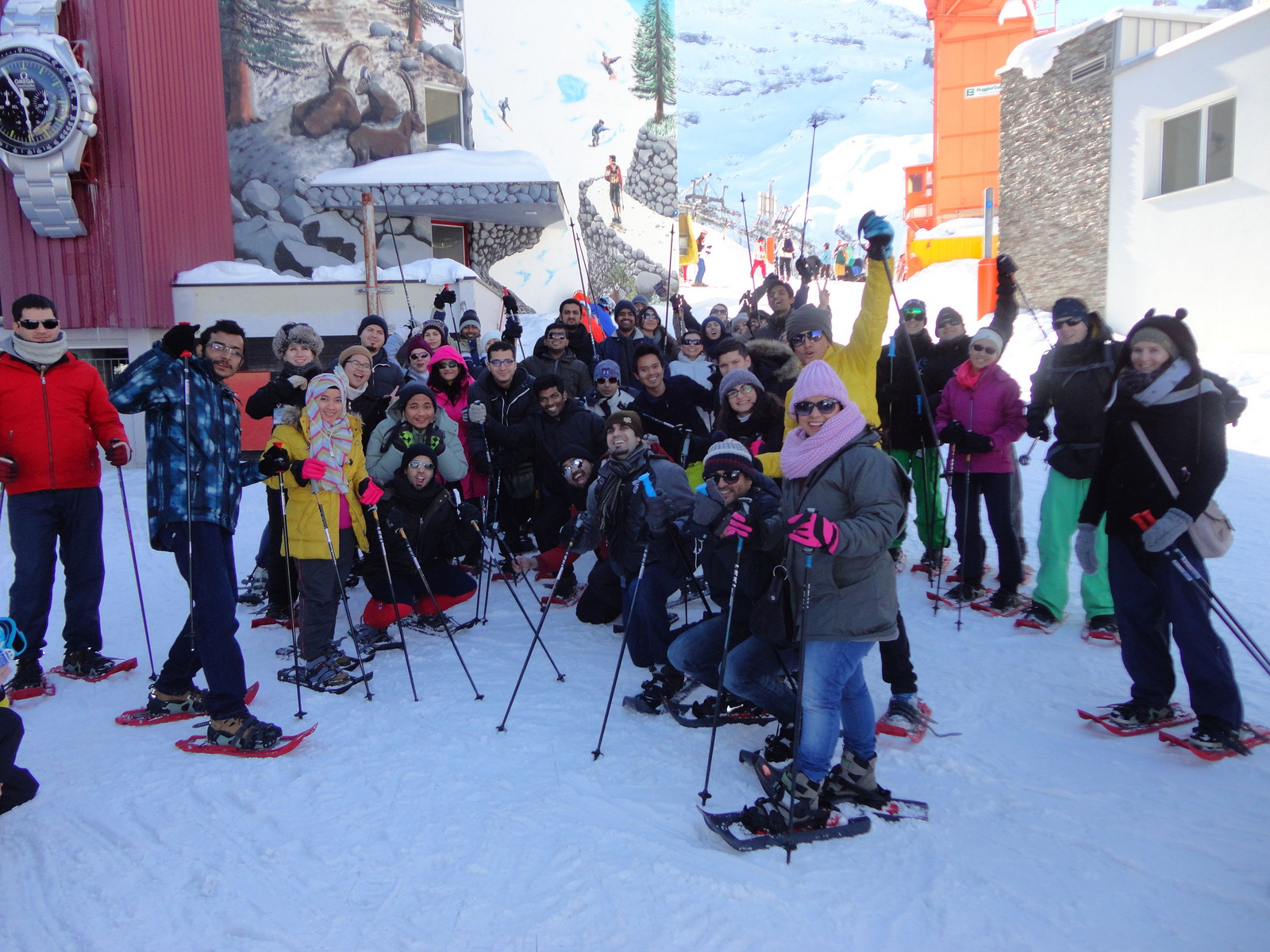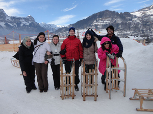 This year on 15 February, 75 international students and their coordinators headed towards their week-end destination: the Swiss Alpes in Engelberg where they spent two days full of activities and fun, including sledging, snow tubing and snowshoeing on the mountain Titlis at an altitude of 1800 m.