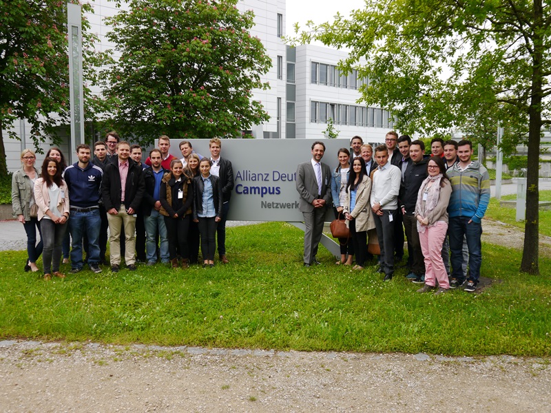 Unter der Leitung und fachlichen Betreuung von Professor Dr. Thomas Baumgärtler und Professor Dr. Ingo Dittrich besuchten Studierende des Bachelor-Studiengangs Betriebswirtschaft im Rahmen einer Exkursion vom 19. bis 21.5.2015 namhafte Unternehmen in München und Schwäbisch-Hall. Das Exkursionsprogramm umfasste Besuche bei der Bausparkasse Schwäbisch-Hall AG, der Hohenloher Milchwerke eG, der Eckert-Caine GmbH, der Münchner Bank eG und der Allianz Deutschland AG.